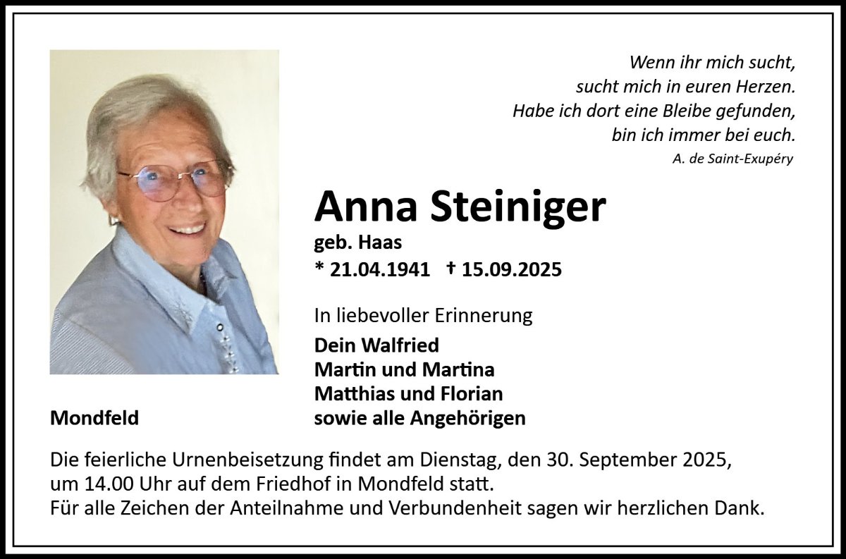 Anna Steinigergestorben am 15. September 2025
