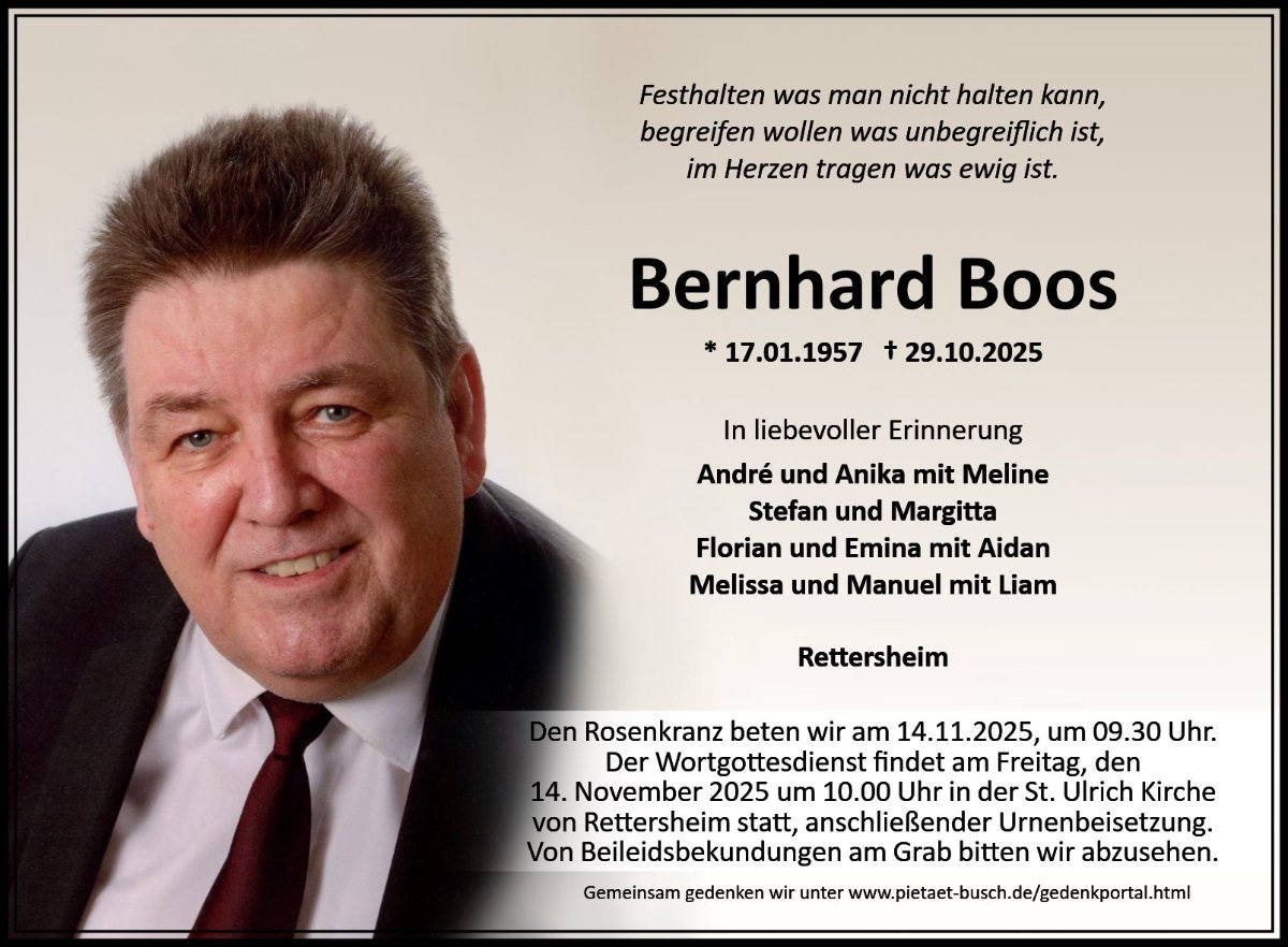 Bernhard Boosgestorben am 29. Oktober 2025