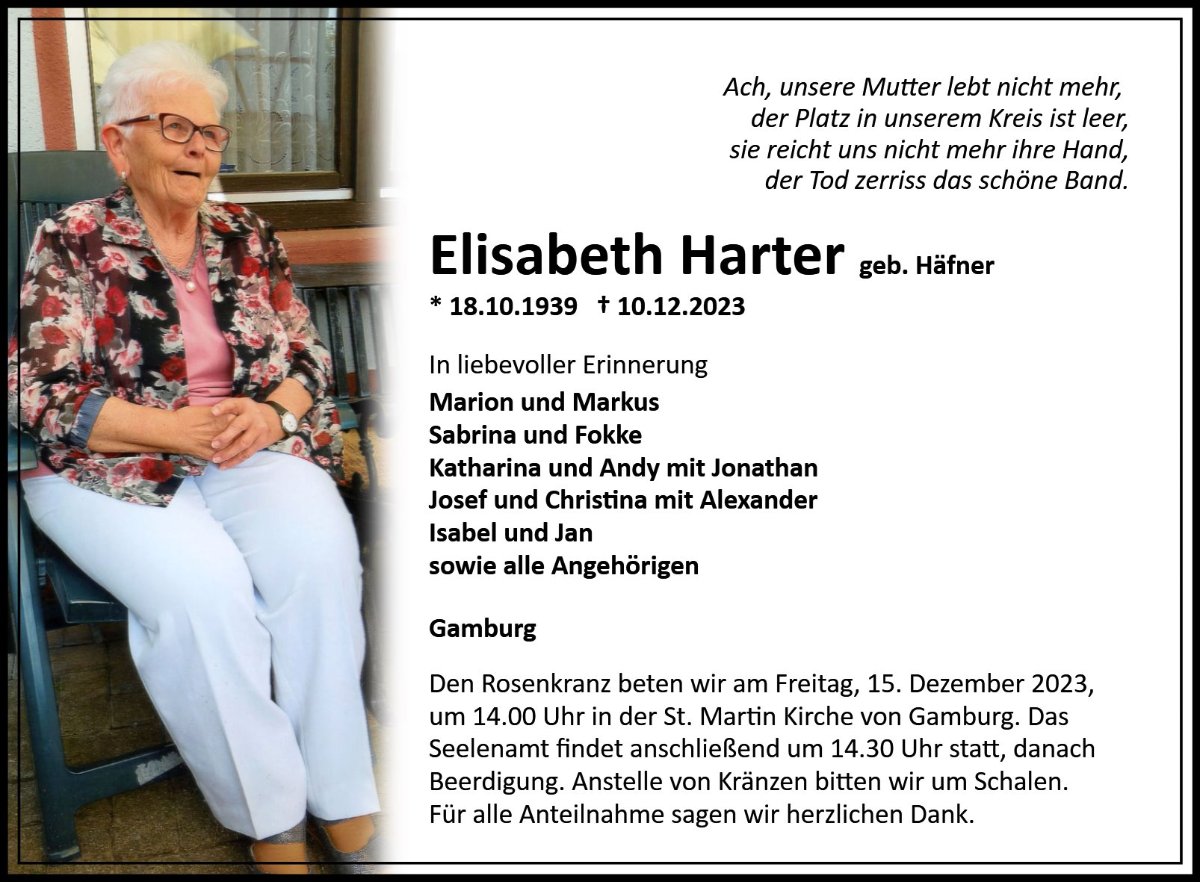 Elisabeth Hartergestorben am 10. Dezember 2023