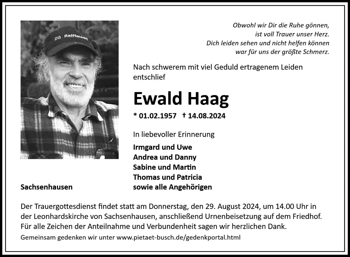 Ewald Haaggestorben am 14. August 2024
