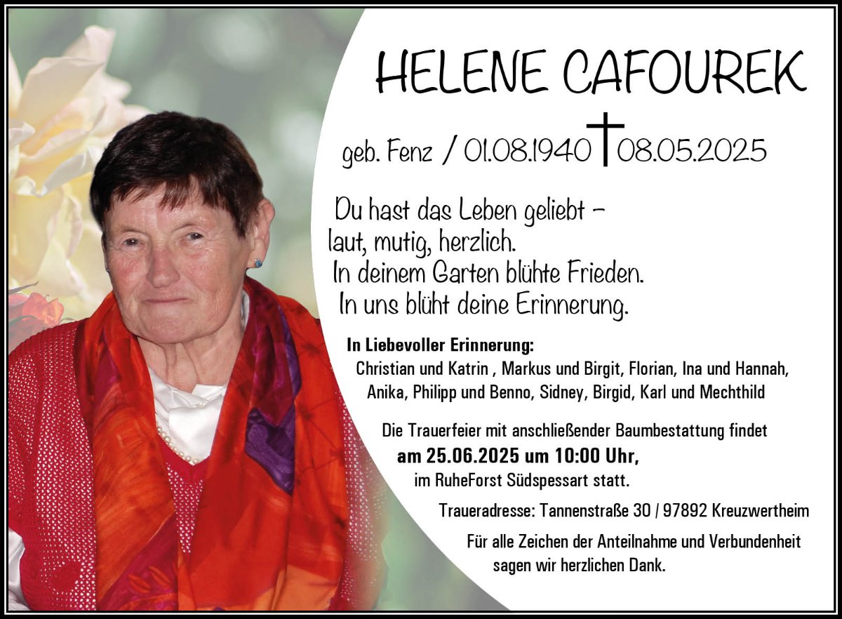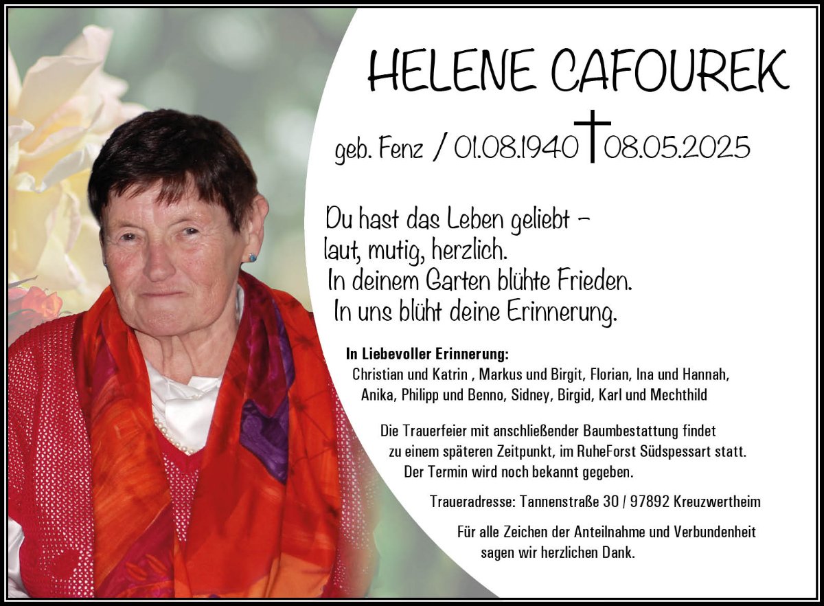 Helene Cafourekgestorben am 8. Mai 2025