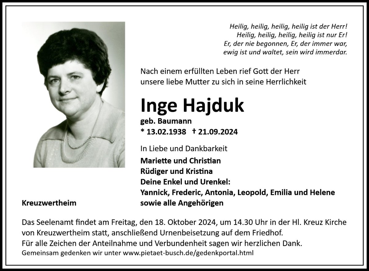meine herzliche Anteilnahme am Tode eurer lieben Mutter. Ich werde ihrer ganz besonders im Gebete gedenken - sie war eine herzensliebe Frau, die ich sehr geschätzt habe.