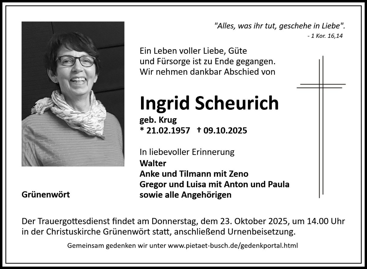Ingrid Scheurichgestorben am 9. Oktober 2025
