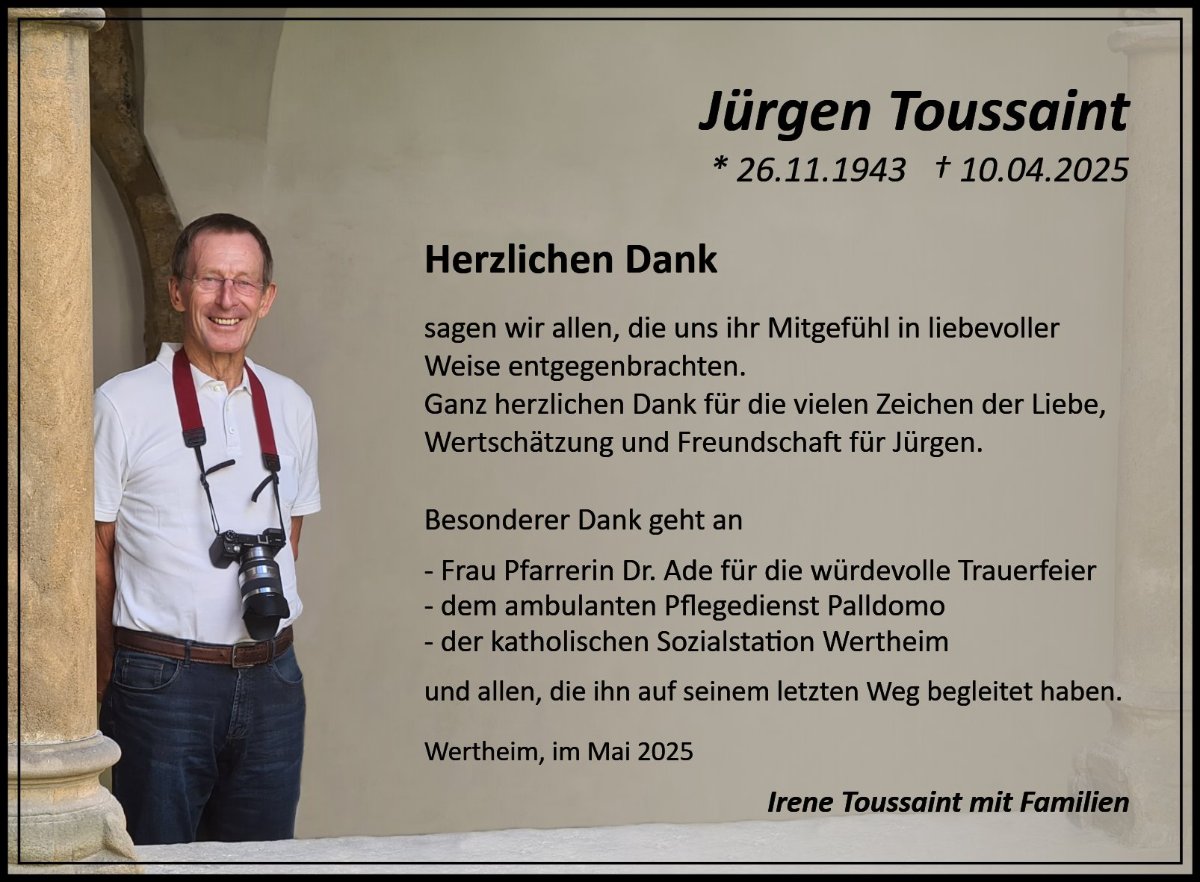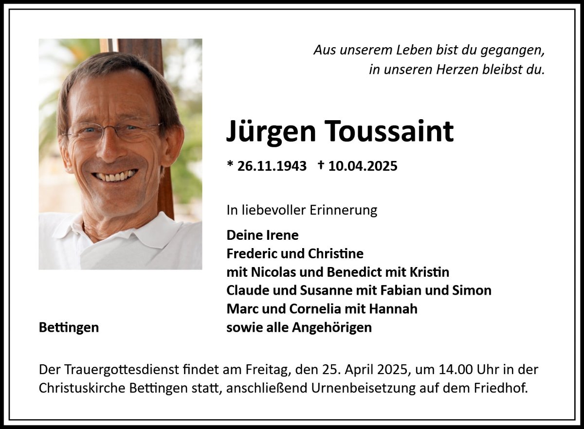 mit großer Betroffenheit erfahren wir von Jürgens Abschied.