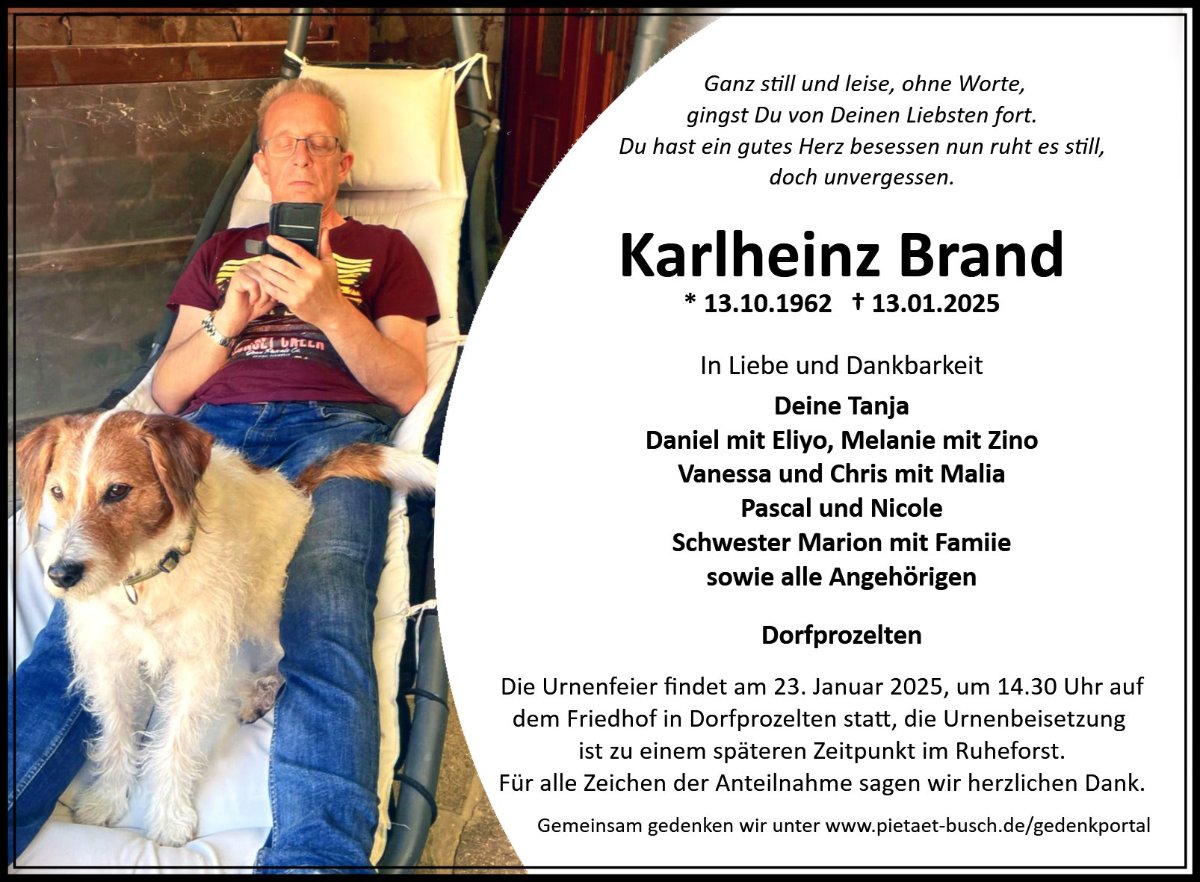 Zu seinem Tod möchten wir unser aufrichtiges Beileid aussprechen und wünschen viel Kraft für die schwere Zeit.