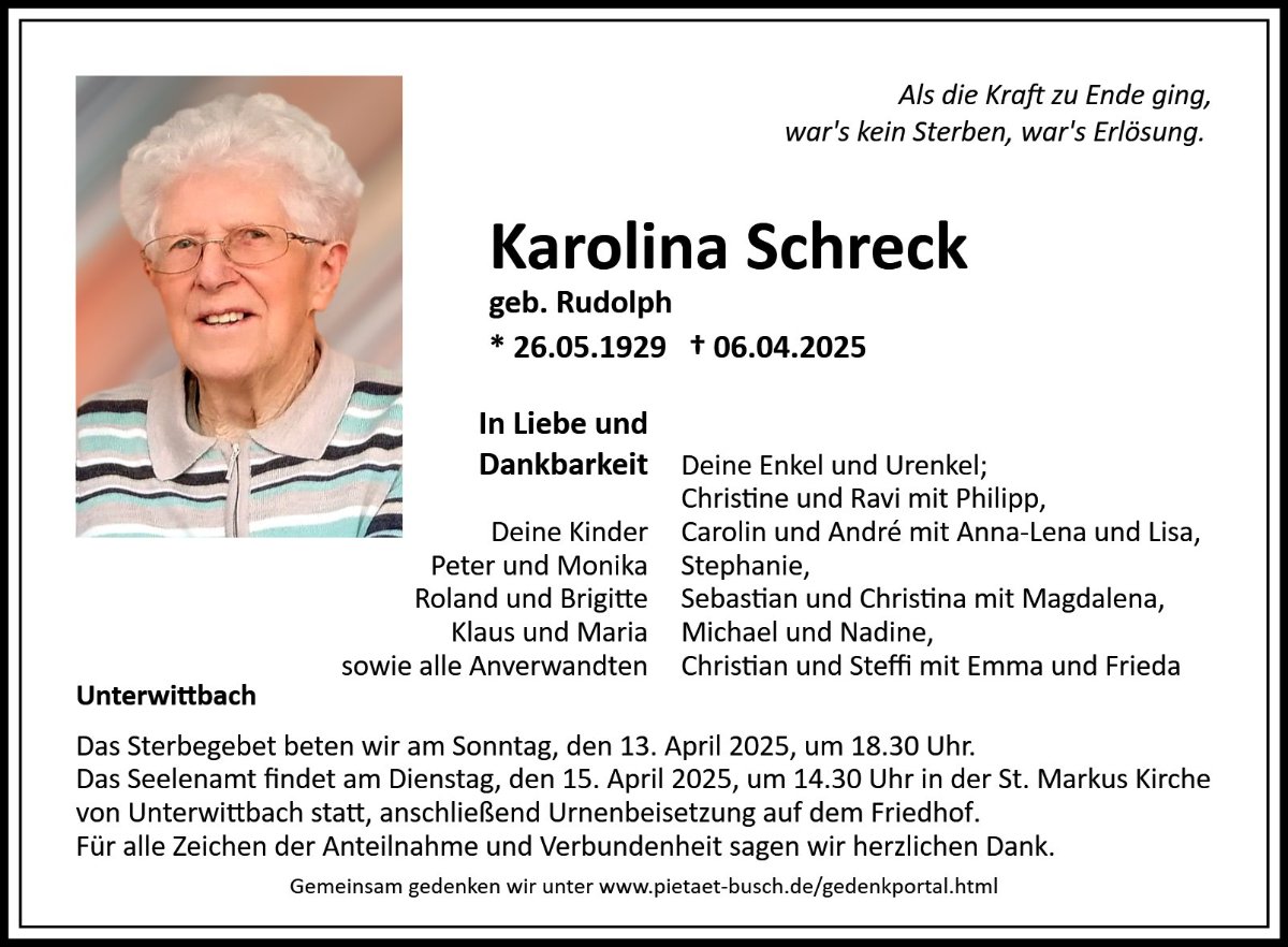 Karolina Schreckgestorben am 6. April 2025