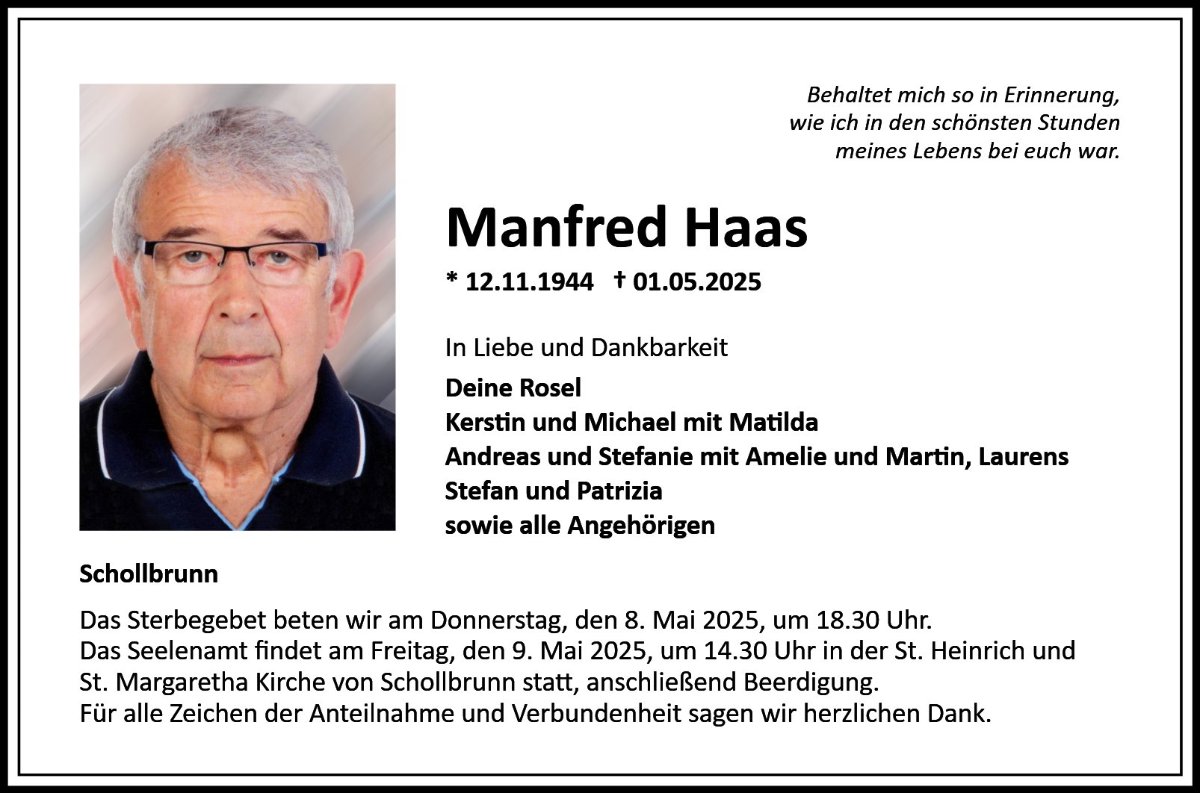 zum Tod von Manfred möchte ich dir mit deiner ganzen Familie mein herzliches Beileid aussprechen.